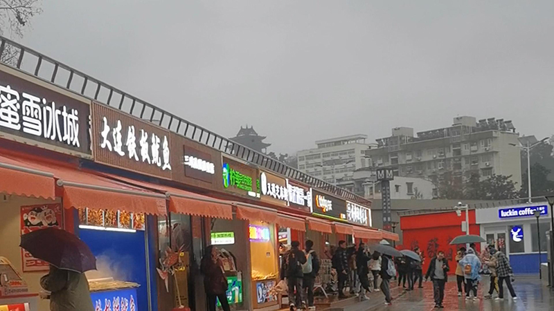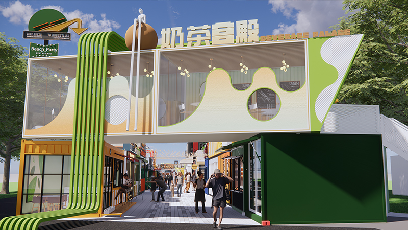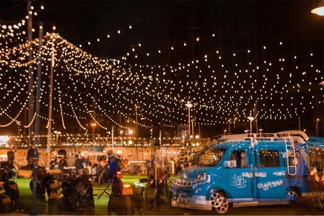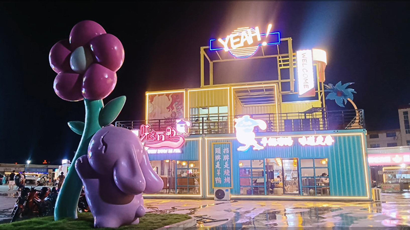 由咱們博客斯定制的赤壁華潤啤酒廣場集裝箱式夜市“五一”火爆出圈