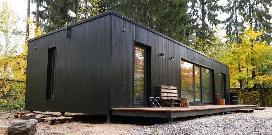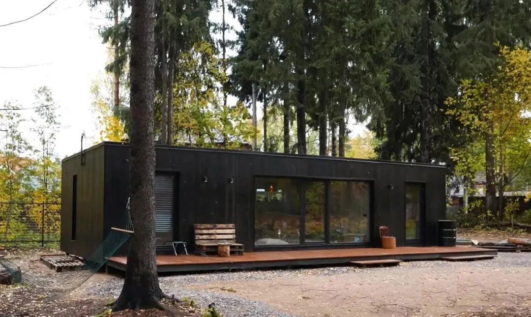 Mill Creek項目由兩個并排放置的40英尺集裝箱組成。房子前面有一個開放區域。模塊化集裝箱房屋由兩個40英尺的集裝箱組成,房屋的尺寸為5×12 m,面積為60 m2。