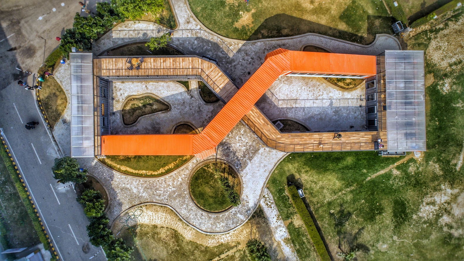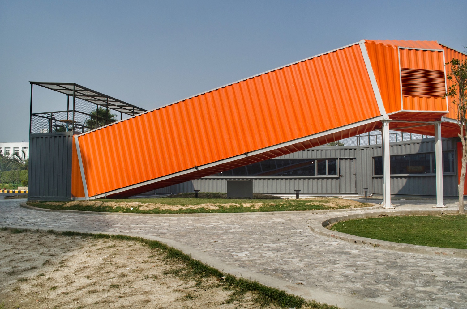 Cafe Infinity學生中心,交叉的彩色集裝箱