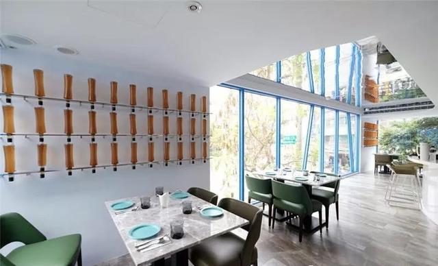 負責設計該餐廳的設計師表示,該土地寬6公尺、長約37公尺,面積不大且呈現狹長型,周圍皆為新大樓,有許多花園景觀。因此該餐廳采用了大量玻璃,引光納景,增強穿透性。