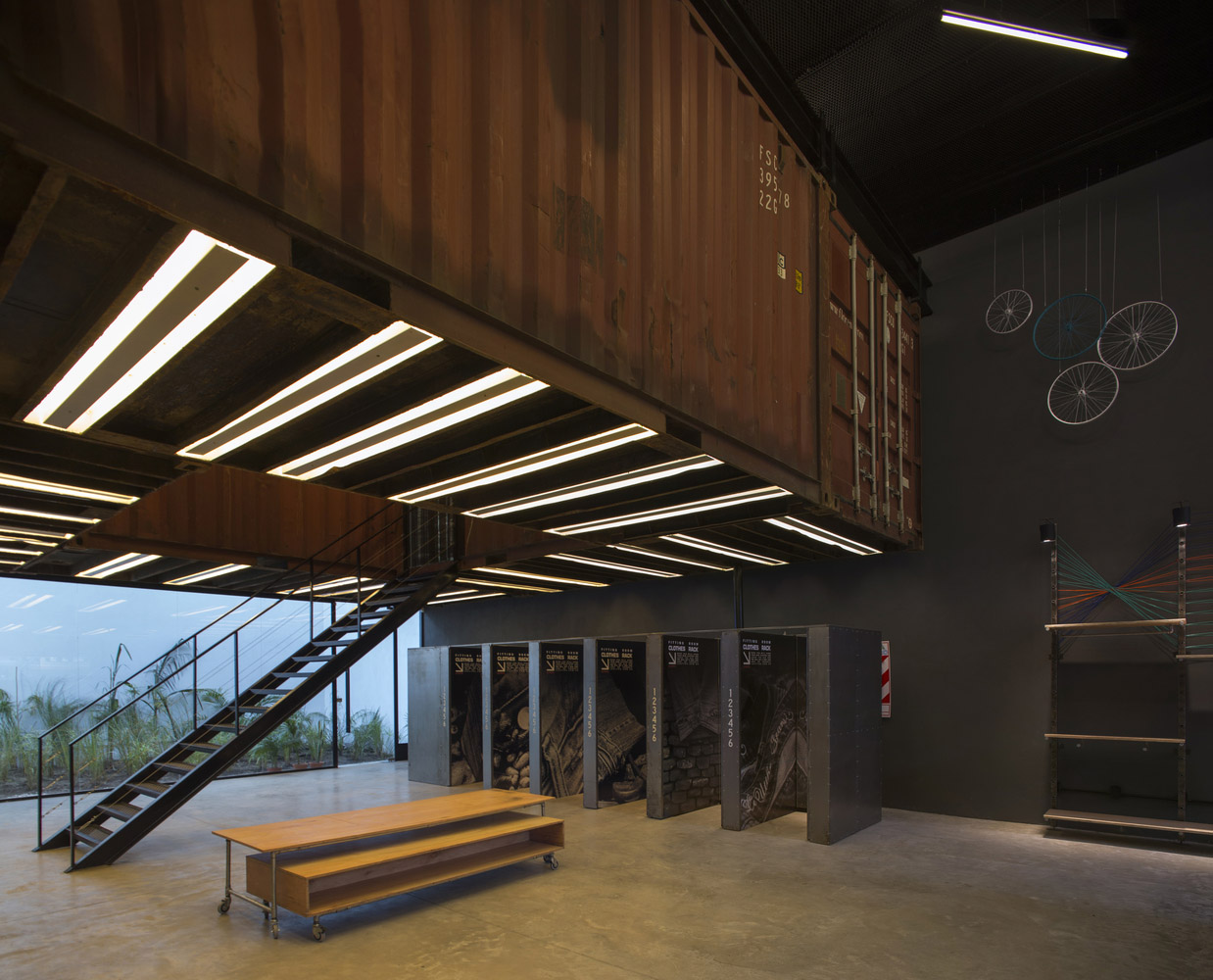 空間的不確定性和Ensenada港口的接近使我們在內部進行短暫安裝,使用四個集裝箱作為工件,響應商店的子公司需求,但可以適應任何活動。整個體積具有慷慨的高度,通過消除障礙物的存在并允許與標準化部件的良好交互來釋放。